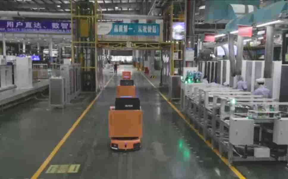 为车载冰箱物流配送打造的智能解决方案,,包含产中物流通过潜伏举升AMR搬运至线边,,产后成品物流智能仓储,,,,流程包含产中物流智能齐套入库,,,线边安灯叫料AMR智能配送至线边,,,,成品入库、、、出库,,通过无人堆高车机器人,,,智能仓储管理替代人工作业管理,,,实现更高存储、、、、更高效率、、、更具柔性化的解决方案。。。
